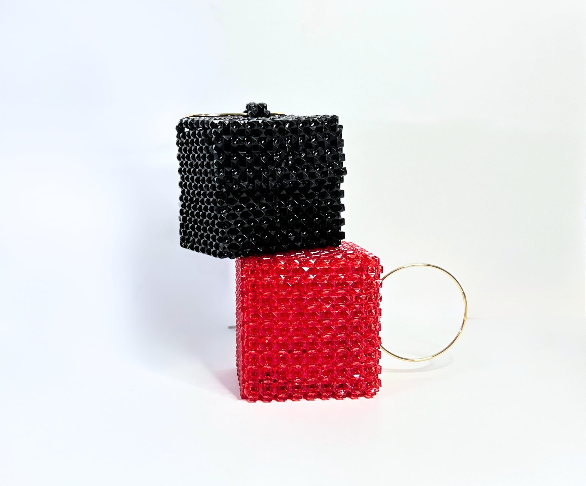 Make a bold, unforgettable statement with the Crimson Cube handbag—a piece that blends architectural design with dazzling texture.